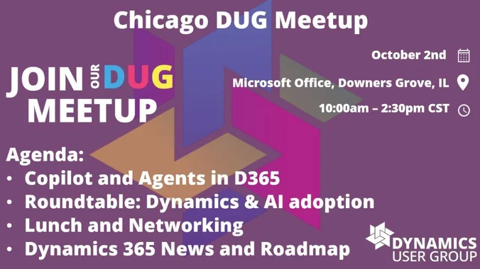 Microsoft Office Microsoft Office: 3025 Highland Pkwy, Suite 200, Downers Grove, IL 60515, Downers Grove, IL, USJoin us for the first Chicago Meetup of the fall! We’ll dive into practical AI use with Microsoft Copilot and Agents in D365, share adoption best practices, and discuss the newest Dynamics 365 updates, spanning Business Central, Finance & Supply Chain Management, and Customer Engagement apps Location: Microsoft Office, 3025 Highland Pkwy, Ste 300, Downers...